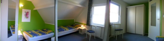 Mit seinen frischen Farben vermittel das 2-Bett-Zimmer fröhliche Ferienstimmung. Hier lässt es sich eine Weile aushalten.... Für Leseratten steht eine kleine Auswahl von Kinder- u. Jugendbüchern bereit.